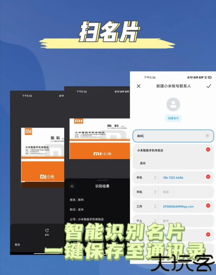扫描后可直接导入至手机通讯录中。