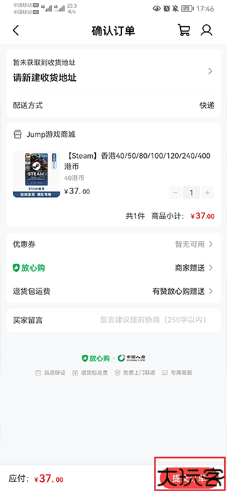 3、输入个人收货信息并确认无误后点击提交完成。
