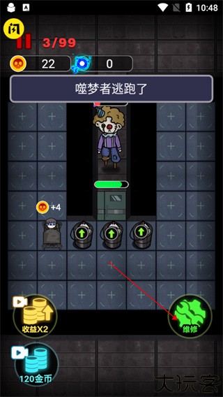 4、噬梦者攻击门的时候,可以点击右下角的维修