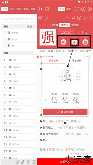 4、具有动态和静态两种标准笔顺,并支持屏幕跟写。