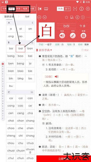2、完美再现线下纸书查字方式,数字版、纸质版对照,可一键切换。