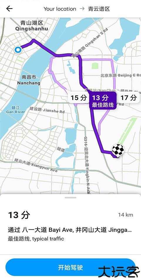 3、在这里就能够看到最佳路线了,选择“开始驾驶”就能够开始导航。