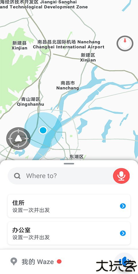1、打开waze导航地图汉化版和去定位,这样就可以在搜索框里去搜索想去的地点。