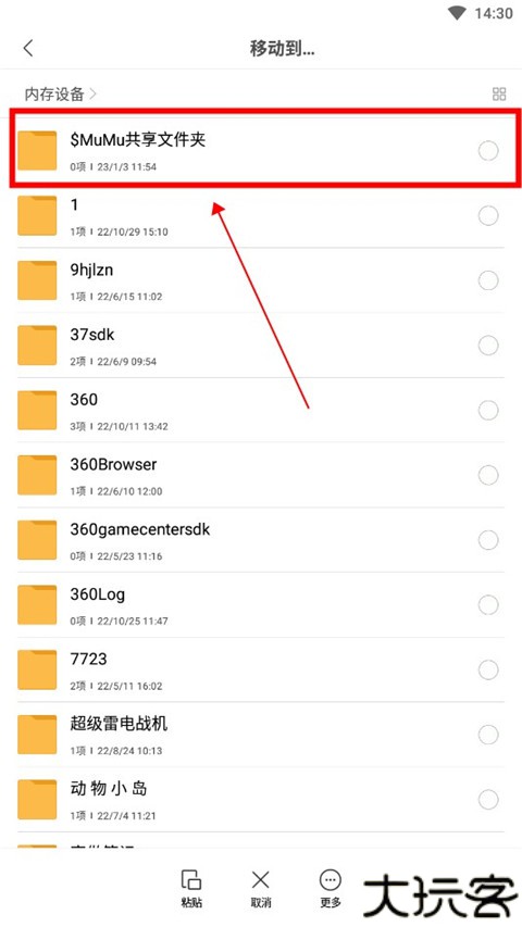 4、进入目标文件夹后,点击底部粘贴按钮完成移动过程。