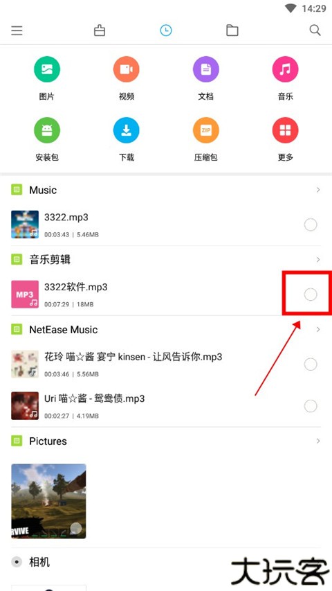 1、进入应用界面,点击目标文件旁的方框进行选中操作。