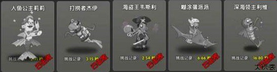 深水湖BOSS包括:人鱼公主莉莉(美人鱼首领)、打捞者杰伊(潜水首领)、海盗王韦斯利(海贼首领)、糊涂蛋派派(海星首领)、深海领主利维(炸鱼首领)。