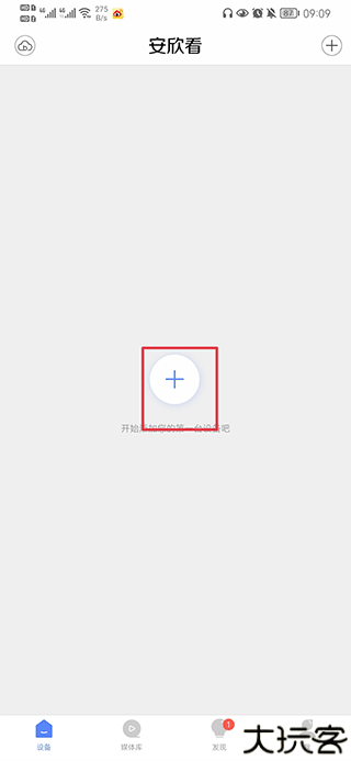1、打开安欣看app后,在设备界面的中央点击中间的+号。