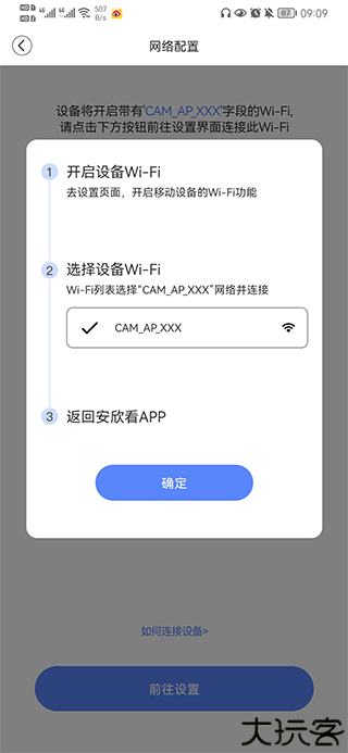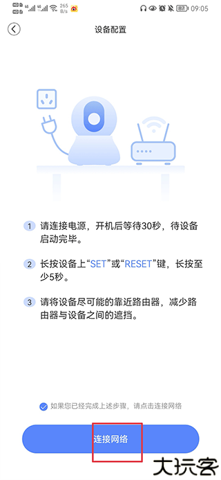 3、选择设备扫码添加后,用户根据提示将设备连接电源并开启后,点击连接网络。