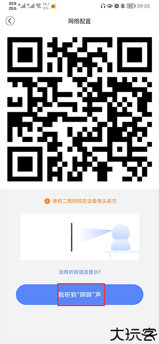 4、将二维码放在摄像头的前方以进行扫描,待听到哔哔声后等待连接即可。