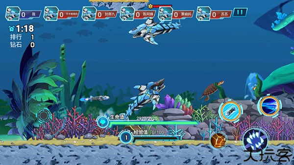 2、每条机械鲨都配备独特的技能配置,合理组合撕咬、冲刺和超声波等一系列招式,形成专属战斗风格。