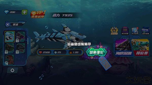 3、多样化的装备系统,玩家可利用各种装备提升机械鲨的能力,以应对更高难度的任务。