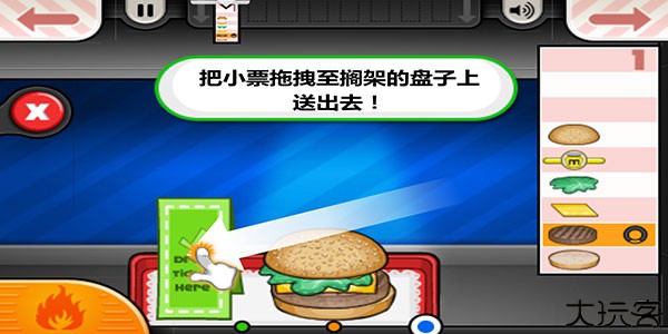 4、制作完成后,把小票拖拽至搁架的盘子上,然后就可以送出去给顾客了。