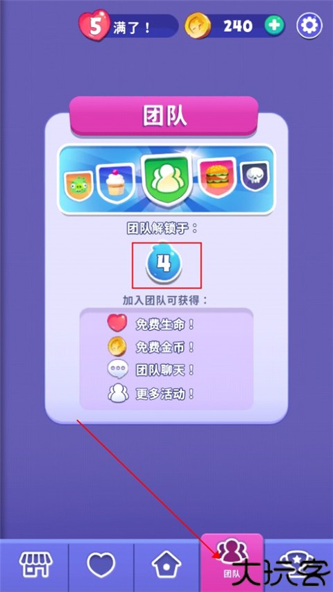 5、当玩家的等级达到四级是就可以加入团队啦。