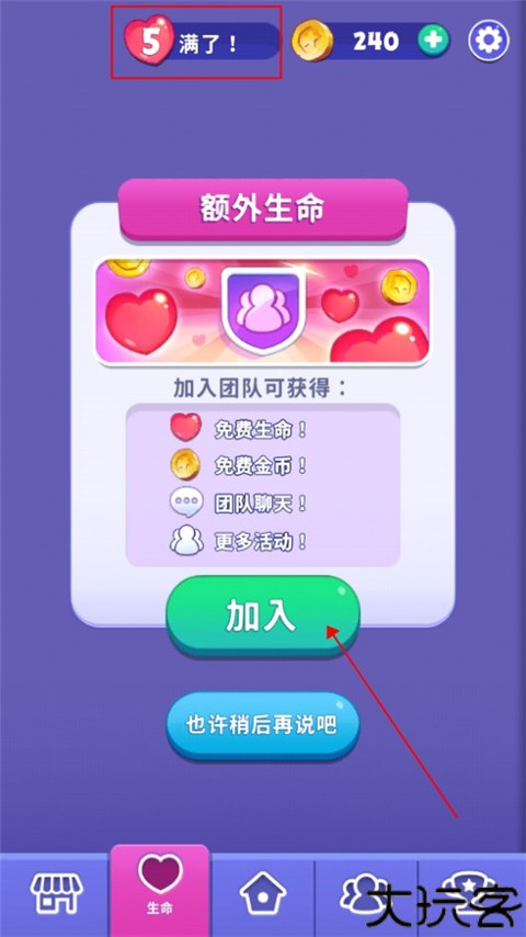 7、玩家在游戏中挑战关卡需要消耗生命力,加入团队玩家还可以获取额外的生命力哦。
