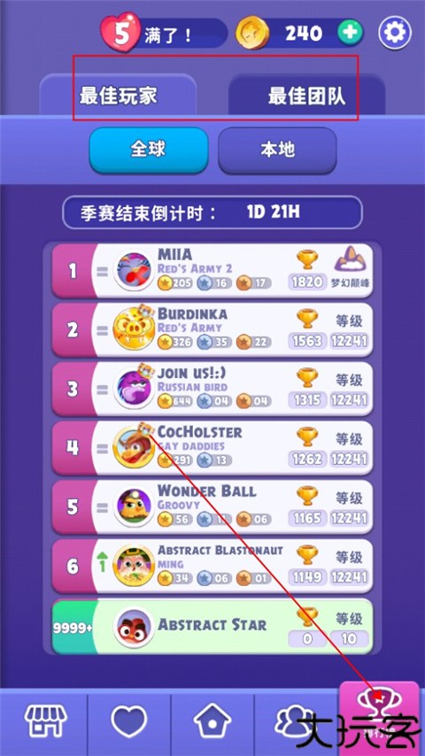 6、玩家还可以查看游戏中的排行榜,有玩家和团队两个排行榜。