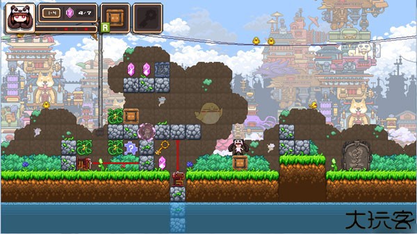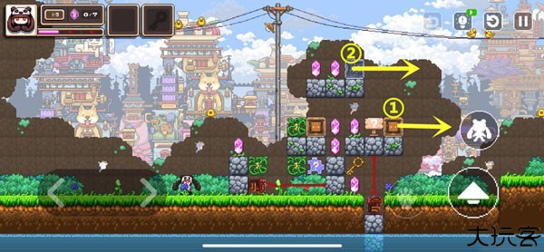 2、关卡中布满了各种谜题,以收集粉色水晶石和取得画面中的拼图碎片为目标。