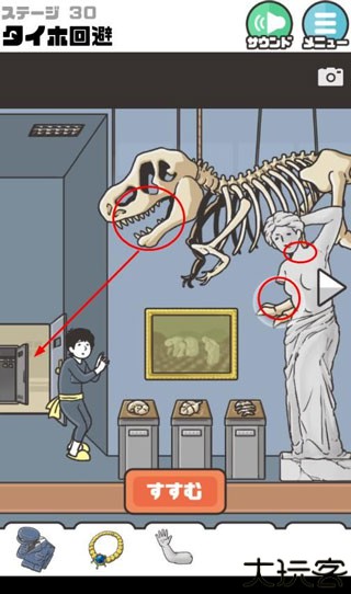 1、首先,点击恐龙口中,获得钥匙,然后打开后面的门,获得制服,