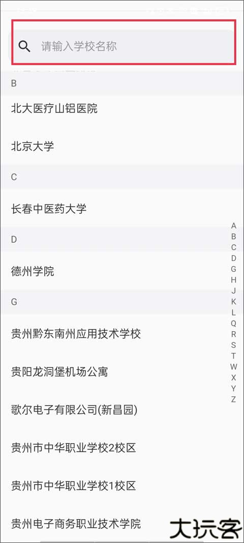 1、打开app之后,用户的第一步就是选择校区,输入自己所在的学校,选择好后就可以进行第二步了。