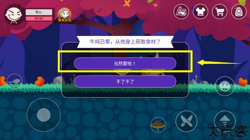 2、砸中后和牛炖对话,出现的选项中选择“当然要啦!”就可以获得牛肉。
