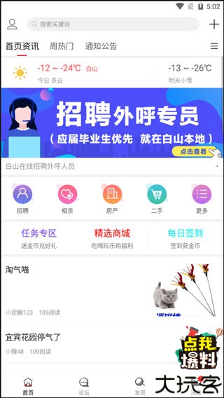 2、首页涵盖热点资讯、通知更新,以及招聘、房产等便民功能。