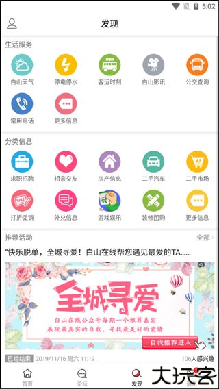 提供房屋租售、求职应聘、交友婚恋等便捷入口。