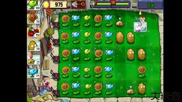 3、布置植物角色抵挡敌人突袭,利用阳光建起防守阵地。