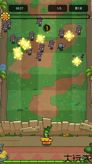 1、进入游戏后会让玩家获得一个植物,植物是会自动攻击的,所以玩家只需要点击阳光收集就好了。