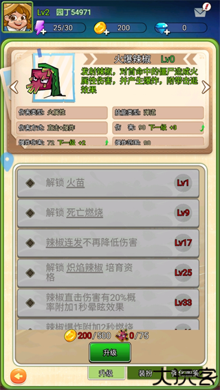 1、玩家可以不断升级植物,在多样性的养成系统里提升其属性,还能解锁更多植物。
