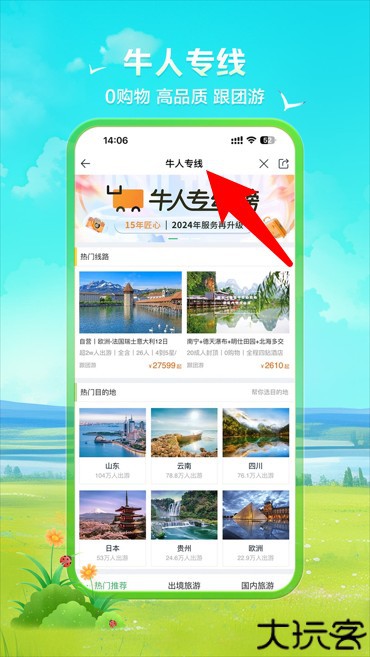 1、牛人专线专区汇聚优质跟团线路,主打0购物高品质服务,包含许多国内外热门目的地。