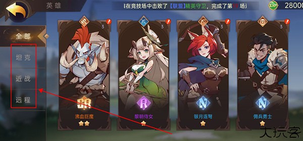 英雄共六类,分为法攻物攻,坦克站前,远程后排,战士能灵活站位。