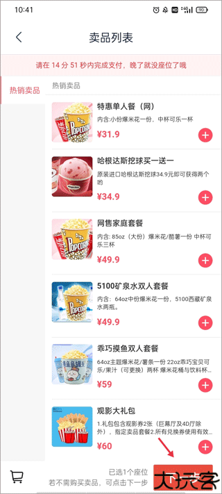 可将饮品零食加入购物车,或直接跳过进入支付。