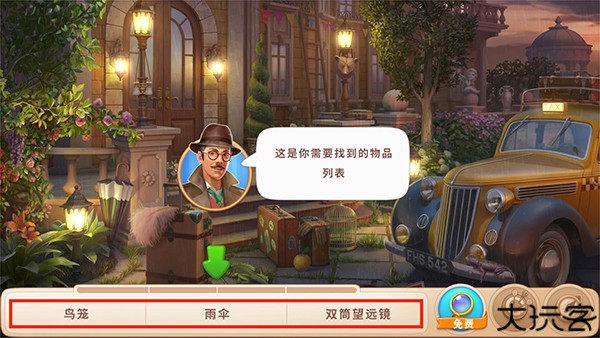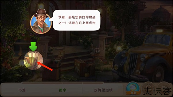需在画面中找出指定物品,如雨伞、望远镜等。