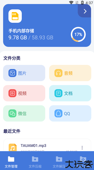 2、在文件管理这里、用户可以对图片、音频、视频、文档、微信、qq等文件进行多种分类整理。