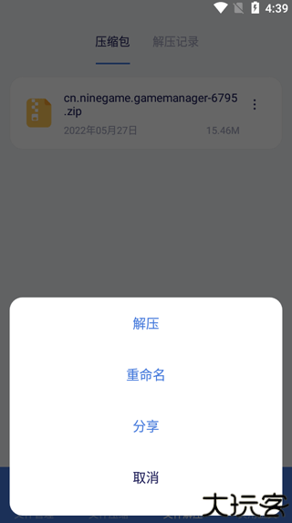 4、点开文件进行解压,用户可以对文件进行解压、重命名、分享等便携操作。