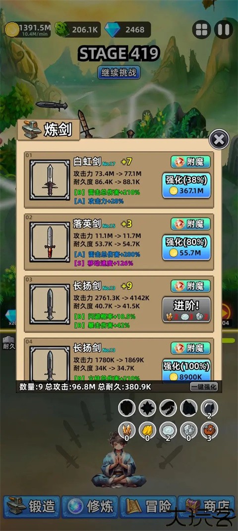 从基础长剑不断精炼,逐步迈向顶阶神器,剑越强实力提升越明显。