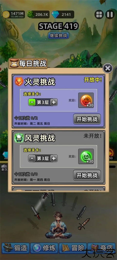 5、活动都是一三五、二四六交替开放,每日闯关两次可产出升级剑灵所需资源。