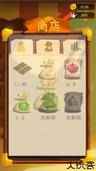 2、种植蔬菜等作物能赚取金币,用金币购买新的种子,提升农场规模。