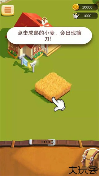 1、在游戏中,初始会有种子和水田,这两个是初始就有的,先点击成熟的麦田进行收割后,会获得相应的麦子,这个时候可以到商场购买东西了。