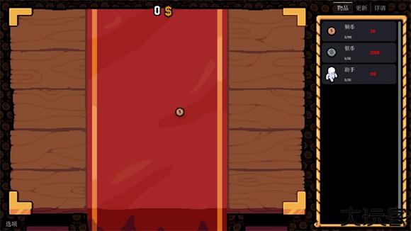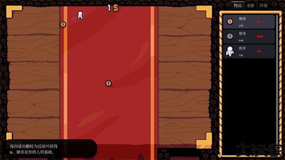2、通过不断点击硬币来获得更多的收益,点击右侧的物品可以解锁助手和更多种类的硬币。