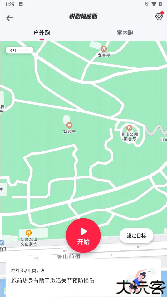 2、点击后会出现两个选项,一个是室内跑步,一个是室外跑步,用户可以根据实际情况进行选择。