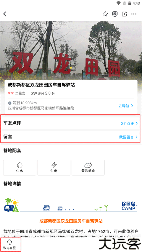 3、查看营地设施配套及点评,心仪后可直接联系客服。