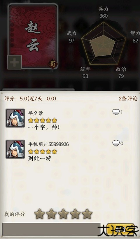 3、对喜欢的武将进行星级评论,查看其他玩家对武将的评论非常有趣。