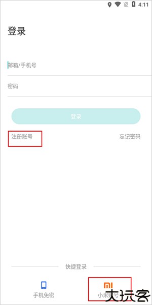 1、安装好软件后就可以注册账号,若拥有小米账号可以登入。