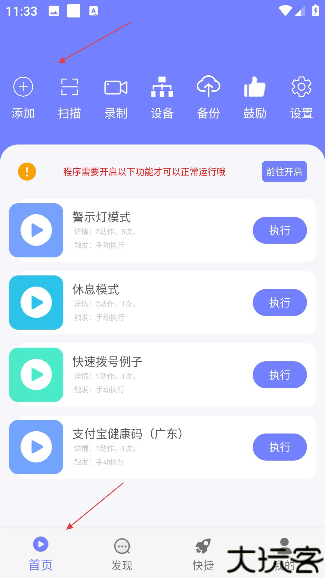 3、只需点击执行可启动对应模式,助力自动化操作。