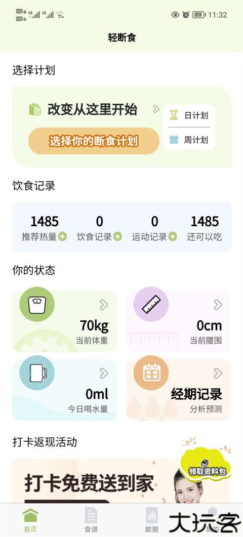 4、软件能自动监测体重及体脂指标,辅助用户去选择更适合的断食方案。