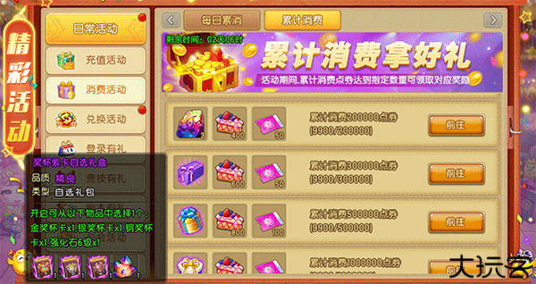 达成点券消费档位,可直接领取紫卡礼包;更新周期同步重置。