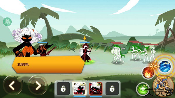 5、战斗中可点选任一火柴人英雄出战,并激活专属大招技能。