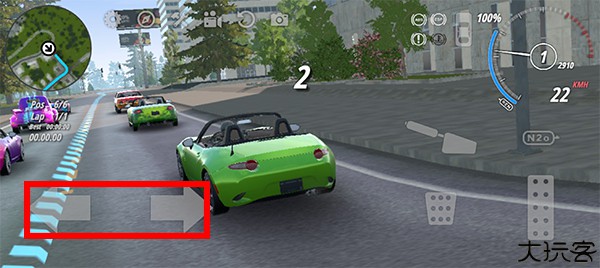 1、玩家进入游戏之后,左下角两个按钮可以用来控制车辆的左右方向。