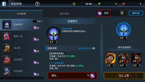 3、游戏角色还有各种技能可以解锁和升级,每种技能都可以独立分配点数,如果分配错误还能重新进行分配。