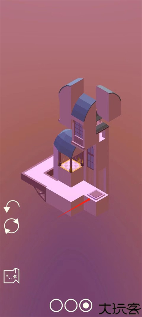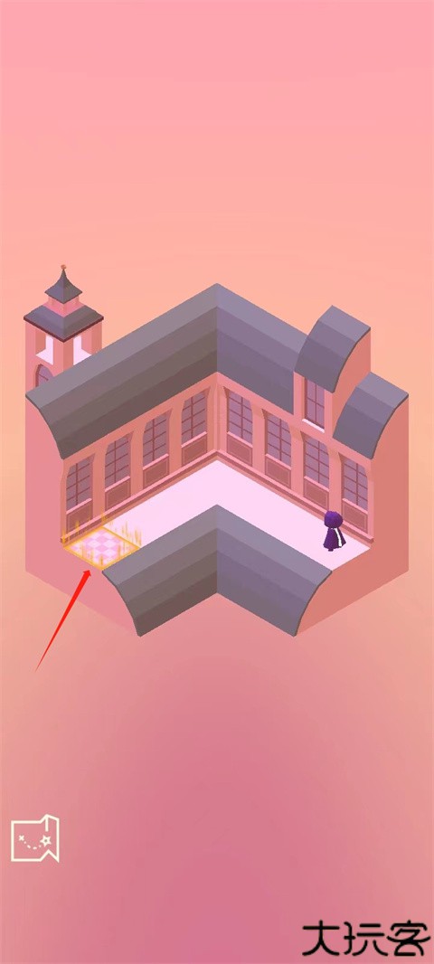 3、第二关则需要走到这个按钮这里,让这里的建筑掉下来,就可以走进去。